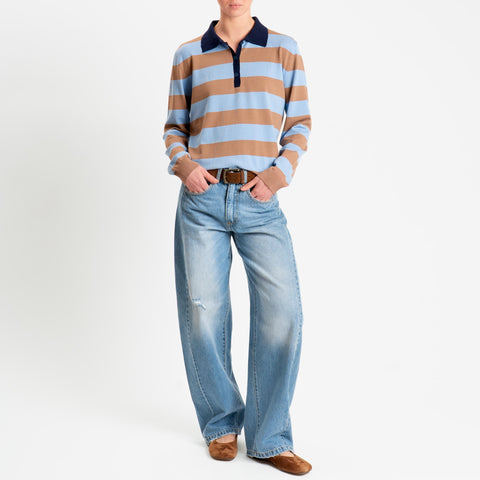 Tensione in-Maglia collo polo a righe - blu/camel/cielo