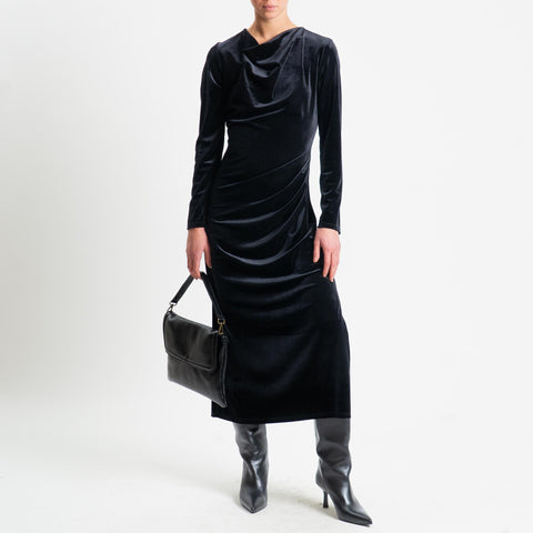 Tensione in-Abito velluto ciniglia arricciatura laterale - nero