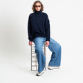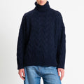 Tensione in-Maglia trecce collo alto misto alpaca - blu navy