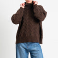 Tensione in-Maglia trecce collo alto misto alpaca - brown