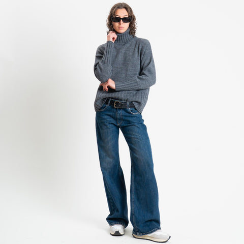 Tensione in-Maglia scatola collo alto misto alpaca - charcoal