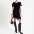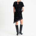 Motel-Abito asimmetrico paillettes+pizzo - Nero