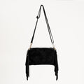 W by Whitemood- Borsa a spalla scamosciata con frange - Nero