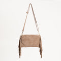 W by Whitemood- Borsa a spalla scamosciata con frange - taupe