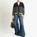 Vicolo-Cardigan a righe lana e cashmere - polvere/moro/giallo