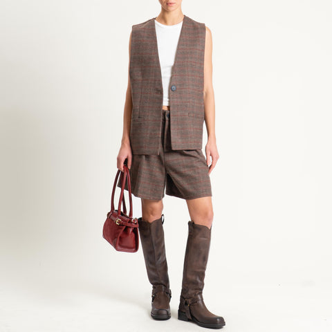 Tensione in-Gilet check un bottone - moro/coccio