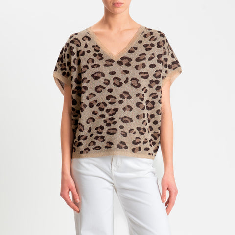 Kontatto- Maglia in lurex fantasia animalier - oro/mou/moro