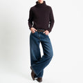 Motel-Maglia collo alto costa inglese spacchi laterali - moro
