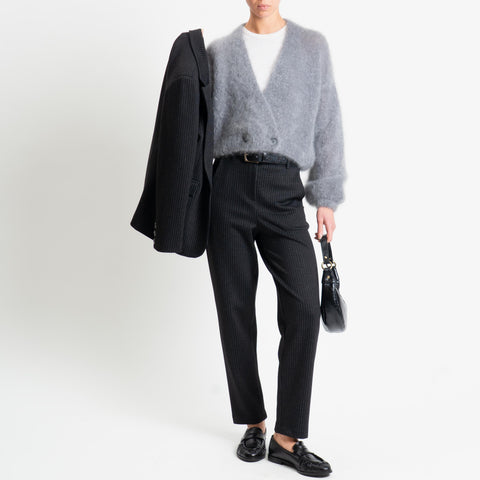 Tensione in-Pantalone gessato punto milano elastico dietro - antracite/grigio
