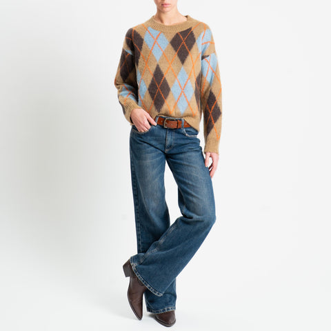 Tensione in-Maglia rombi argyle misto alpaca - camel/moro/azzurro