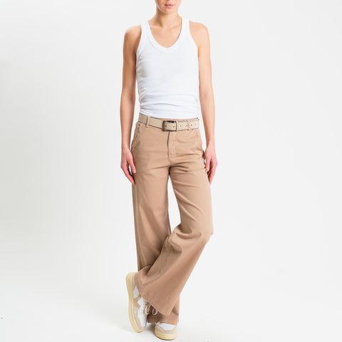 Zeroassoluto-Pantalone LILLY palazzo cotone elasticizzato - biscotto