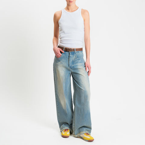 Motel-Jeans wide leg con cintura elastico dietro - denim