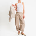 Philia Loft-Pantalone barrel in popeline di cotone- sabbia