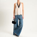 Dixie- Top satin scollo dietro con pizzo - panna