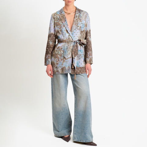 Dixie-Giacca fantasia con cintura - celeste/moro
