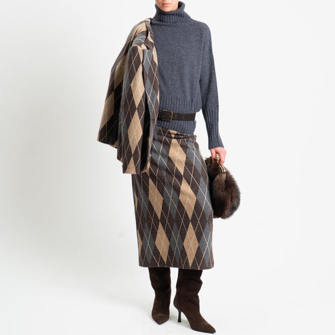 Tensione in-Gonna rombi spacco dietro - moro/grigio/beige