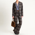 Haveone-Pantalone check wide leg in flanella - moro/tabacco