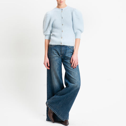 Kontatto-Cardigan misto alpaca manica palloncino - cielo
