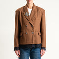 Motel- Giacca gessata doppiopetto con pizzo - tabacco
