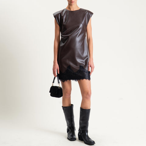 Motel-Abito in satin con pizzo spacco laterale - moro