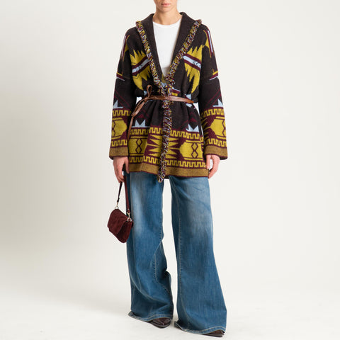 Philia Loft-Cardigan fantasia entica con cintura - moro/olio/vino