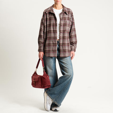 Dixie- Camicia check over in flanella - bordeaux/moro