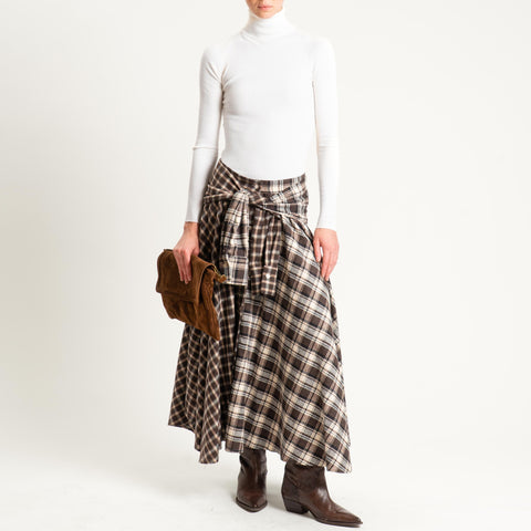 Dixie- Gonna check in flanella con bottoni - moro/burro