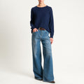 Zeroassoluto-Maglia girocollo spacco dietro - blu