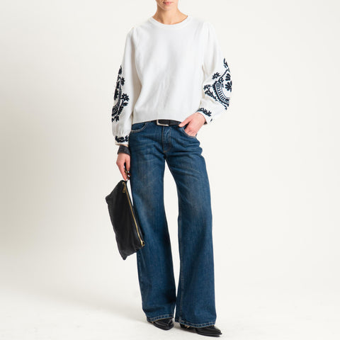 Philia Loft-Maglia girocollo con ricami - panna/nero