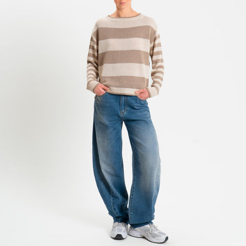 Tensione in-Maglia scatola a righe - ecru/taupe