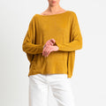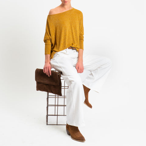Zeroassoluto-T-shirt scollo barca scatola con lurex - Senape