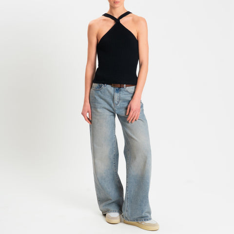 Kontatto- Top con nodo a costine - Nero