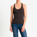 Zeroassoluto- Top a costine scollo vogatore cotone elasticizzato - moro