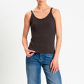Zeroassoluto- Top a costine scollo stondato cotone elasticizzato - moro