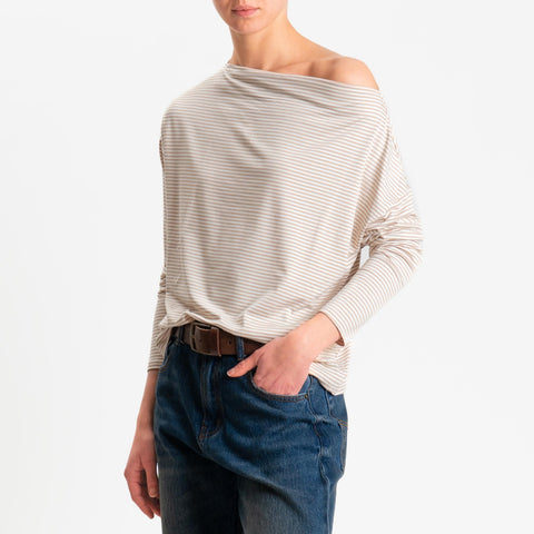 Zeroassoluto-T-shirt CLOE righe in jersey elasticizzato - beige/latte