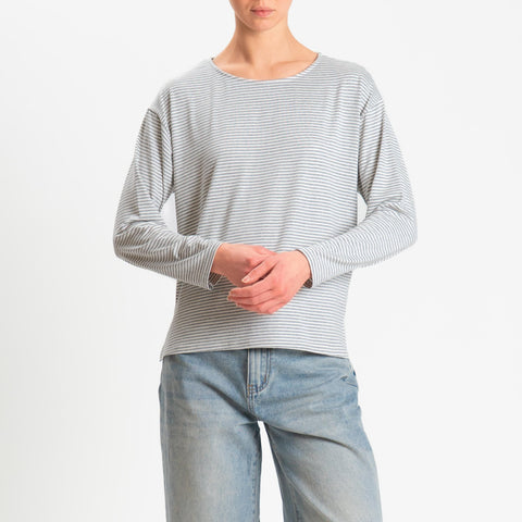 Zeroassoluto-T-shirt CLAUDE righe in jersey di vicosa elasticizzato - grigio melange/latte