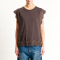 Tensione in-T-shirt smanicata con pizzo - moro/moro