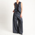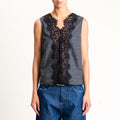 Tensione in- Top principe di galles con pizzo - grigio