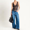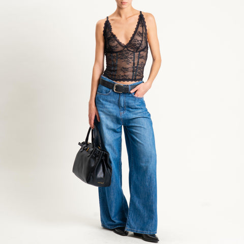 Tensione in-Top doppio scollo a v in pizzo - nero