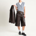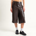 Tensione in-Bermuda similpelle elastico dietro - moro
