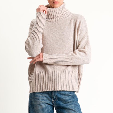 Tensione in-Maglia collo alto 100 % lana - castoro