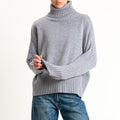 Tensione in-Maglia collo alto 100 % lana - grigio