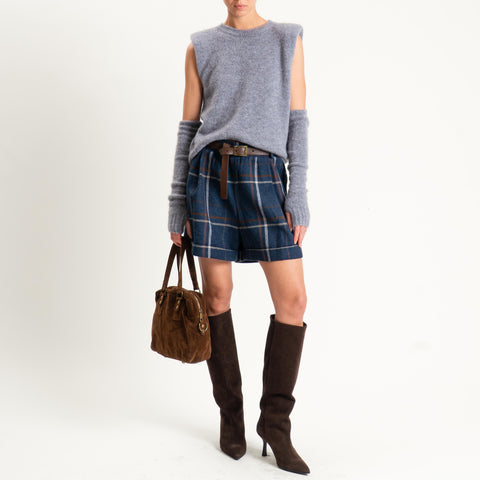 Tensione in-Shorts check misto lana - blu/cuoio/latte