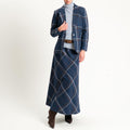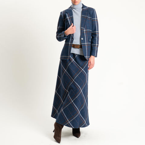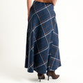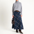 Tensione in-Gonna check misto lana elastico in vita - blu/cuoio/latte