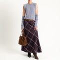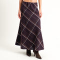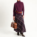 Tensione in-Gonna check misto lana elastico in vita - bordeaux/cuoio/latte