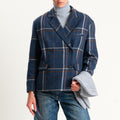 Tensione in-Giacca check misto lana con balaclava - blu/cuoio/latte/grigio