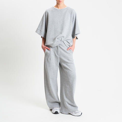 Tensione in-Pantalone wide leg felpa light tessuto elasticizzato - grigio chiaro