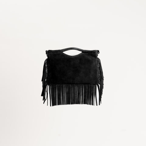 W by Whitemood-Borsa a mano scamosciata con frange - Nero