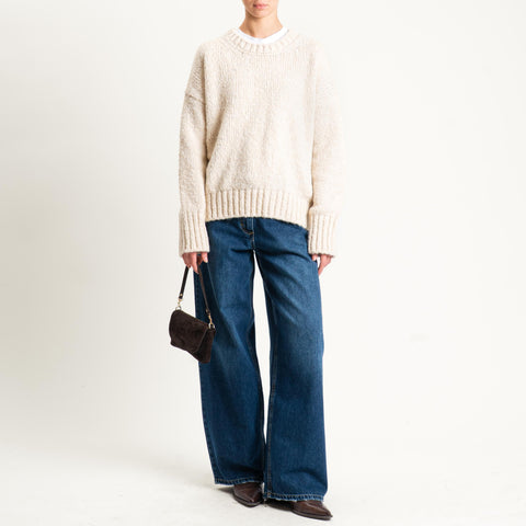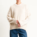 Vicolo-Maglia girocollo bordi a coste misto lana - burro