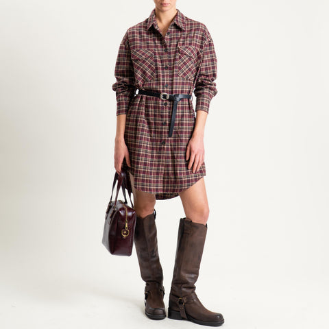 Tensione in-Abito check in flanella con cintura - Bordeaux